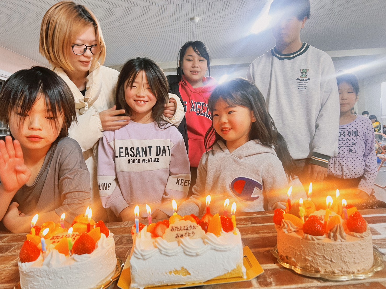 久留米でも有名なケーキ屋さん「グランシェフ」さんが、じじっか応援団として、毎月美味しい美しいケーキを提供してくださいます。誕生日月の人たちから先にケーキを選べる特権があり、みんなが心待ちにしている一日。血縁のない大家族が一斉に「おめでとう」を伝えることができる家族の日をグランシェフの心のこもったケーキが鮮やかにしてくれています。